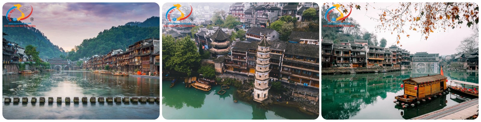 Chiều: Ăn trưa xong, có xe buýt đưa đón vào trung tâm “Thành Cổ Phượng Hoàng” là một thành cổ nằm ở phía tây tỉnh Hồ Nam, được nhà văn Tân Tây Lan Alley Rewi khen ngợi là nơi đẹp nhất Trung Quốc, với những ngôi nhà cổ áp sát vào núi và soi mình xuống dòng Đà Giang. Đặc biệt với những cây cầu nối hai bờ của dòng sông là nét đặc biệt của thị trấn này. Có đến cả chục cây cầu bắc qua con sông nhỏ, từ những cây cầu đá có tuổi đời bằng với khu thành cổ, cây cầu gỗ hình gấp khúc, cây cầu sắt cho đến cây cầu bê-tông lớn dành cho xe cơ giới qua lại. Với những thắng cảnh nổi tiếng (Hồng Kiều, Cầu Đá Nhảy, Thành lầu Đông Môn, tháp Vạn Danh)..