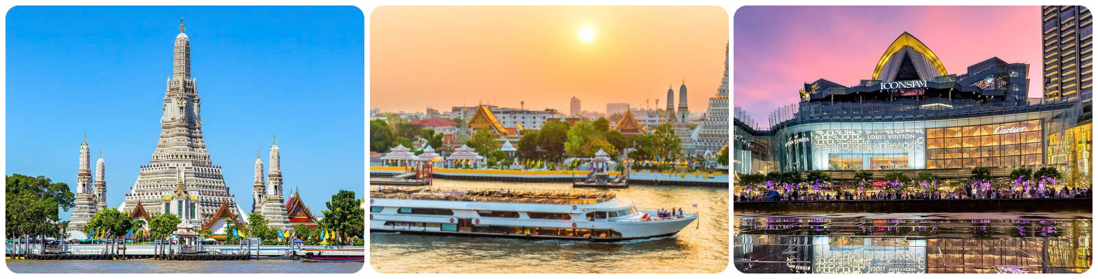 Sau đó Xe đưa đoàn ăn tối “buffet du trên thuyền” + Tham quan chụp hình bên ngoài tại “khu phức hợp thương mại siêu khủng Iconsiam” và thưởng thức các màn nhạc nước rực rỡ ánh sáng và âm thanh du dương hiện đại và dài nhất Đông Nam Á, với chiều dài 400m, nằm bên bờ sông Chao Phraya, nơi đây đã trở thành điểm đến hàng đầu mới ở Bangkok).